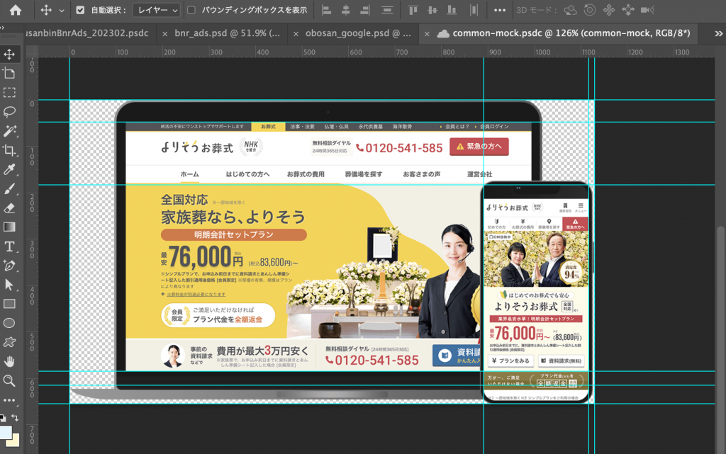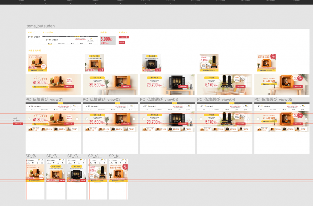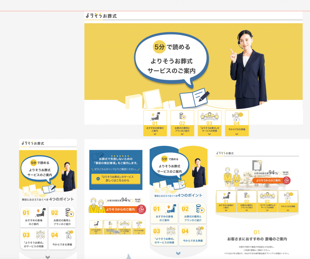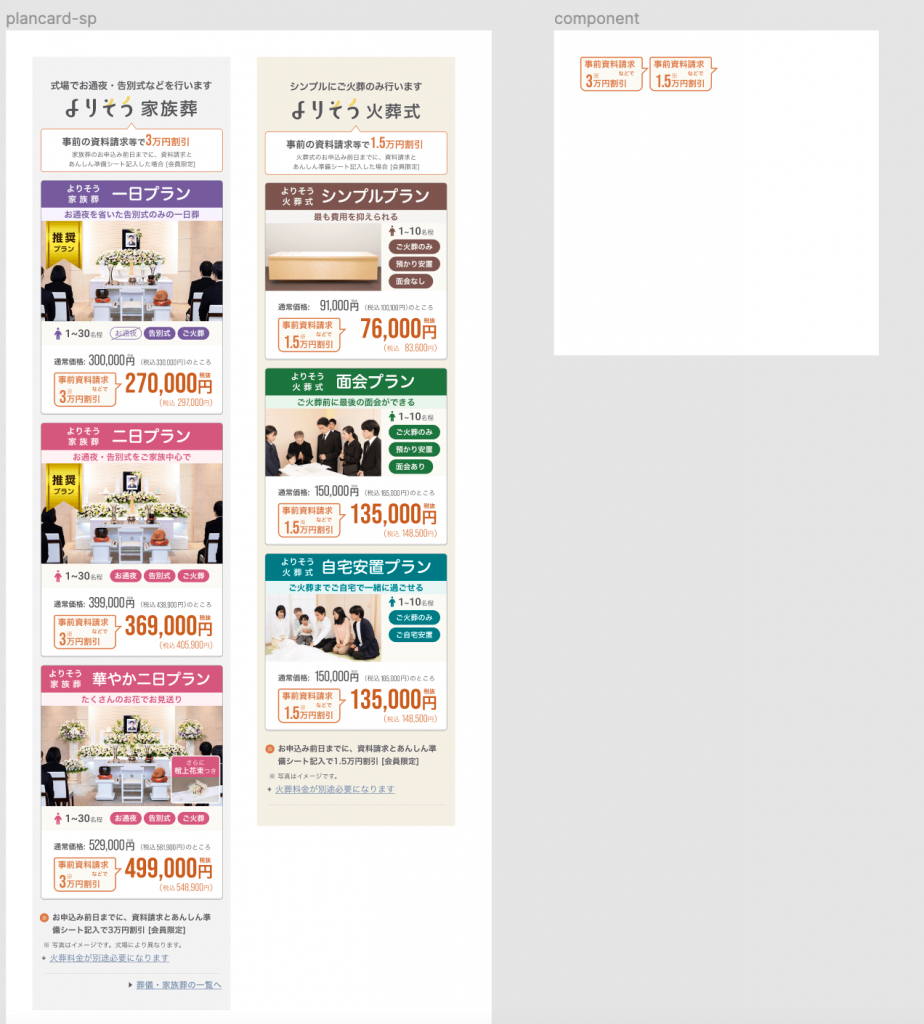 - 葬儀サービス用LP、ページリニューアル用デザイン、サービス内UIデザインのレイアウト設計と構築・ワイヤーフレーム~モック作成